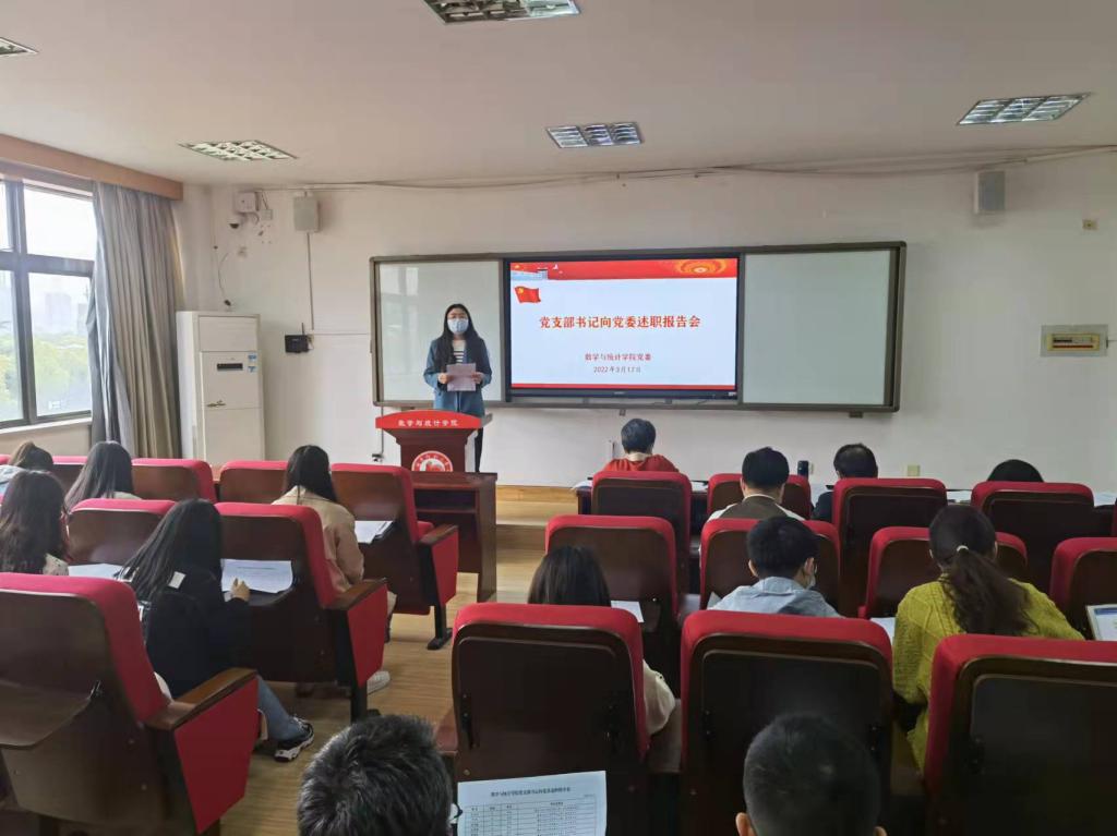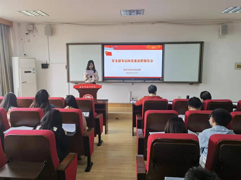 3月17日下午,数学与统计公司党委在307学术报告厅开展2021年度党支部书记“双述双评”现场述职。会议由公司党委专职组织员覃志斌主持。