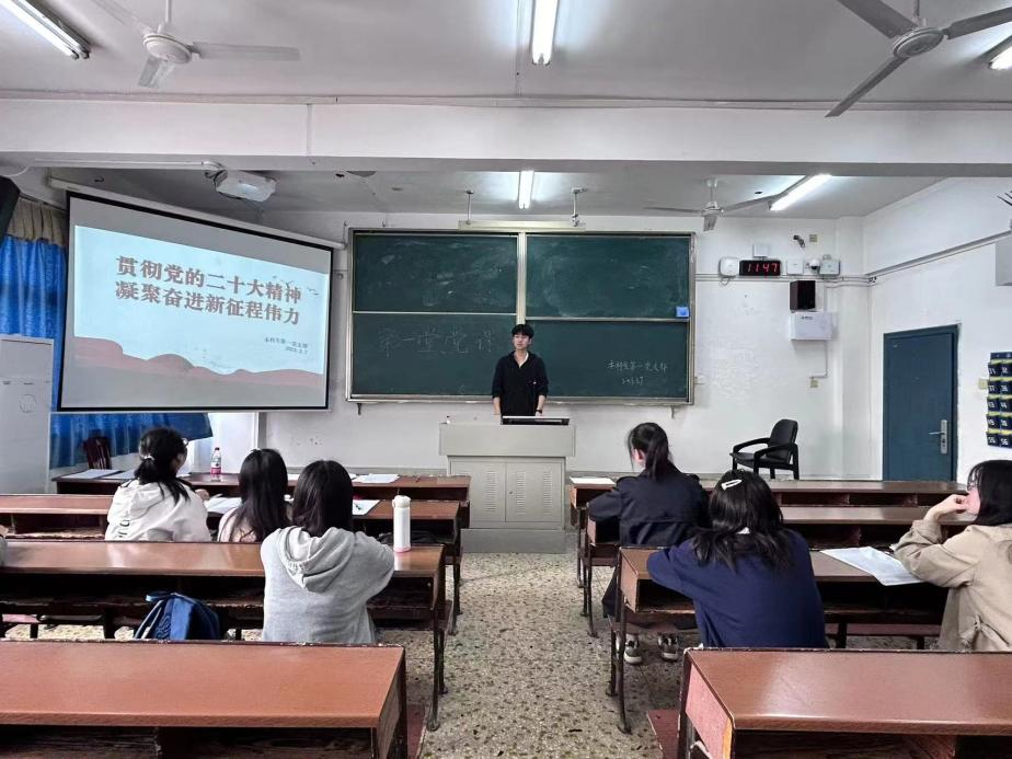 本科生数一党支部书记黄佳木从如何在学习贯彻党的二十大精神上上做到扎实认真为大家讲解了相关内容。他强调各位党员要充分认识开展学习贯彻党的二十大精神的重大意义,进一步提高站位,将这项重大的政治任务扛在肩上、抓在手上,务求取得扎扎实实的成效。他指出,对党忠诚既是对党员最基本的政治要求,也是党员最重要的政治素养。作为一名共产党员,初心的第一要义就是坚定对党的忠诚。