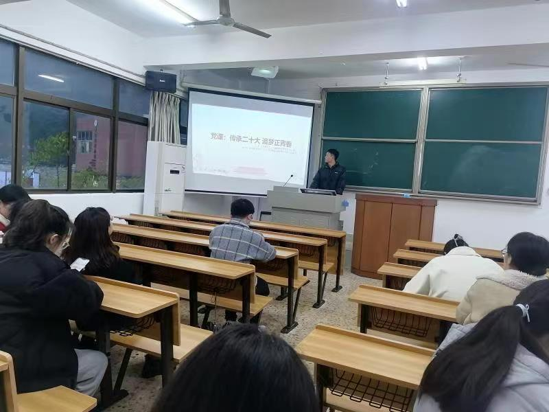 研统计学与课程教学党支部书记彭阳从二十大中关于青年的内容出发,结合习近平总书记在庆祝中国共产主义青年团成立100周年大会上的讲话及新时代中国青年白皮书,以自建党以来各个时期突出青年人物及事迹为依托,展开讲述青年党员同志应当如何传承“青春”精神,勇担时代责任。他强调,我们要深刻领会党的二十大精神的丰富内涵,付诸实践,紧密团结在以习近平同志为核心的党中央周围,争做有理想、有担当、能吃苦、肯奋斗的新时代青年,接过时代的接力棒,为实现中华民族伟大复兴中国梦而接续奋斗。