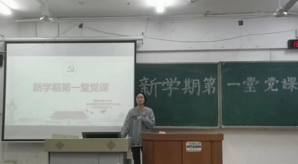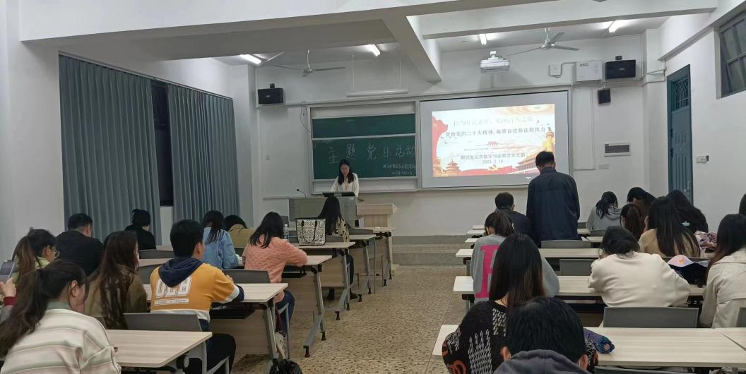 研应用统计与学科教学党支部书记吴丽华从解读二十大报告中教育、科技、人才“三位一体”出发,沿历史脉络讲述我国科教兴国战略的发展与完善,再到湖南“三高四新”战略的学习,和高校在新时代下的育人使命。她强调,新时代的青年要志存高远,还要行稳致远;要以实际行动筑牢国家强盛之基,为全面建设社会主义现代化强国而不懈奋斗。