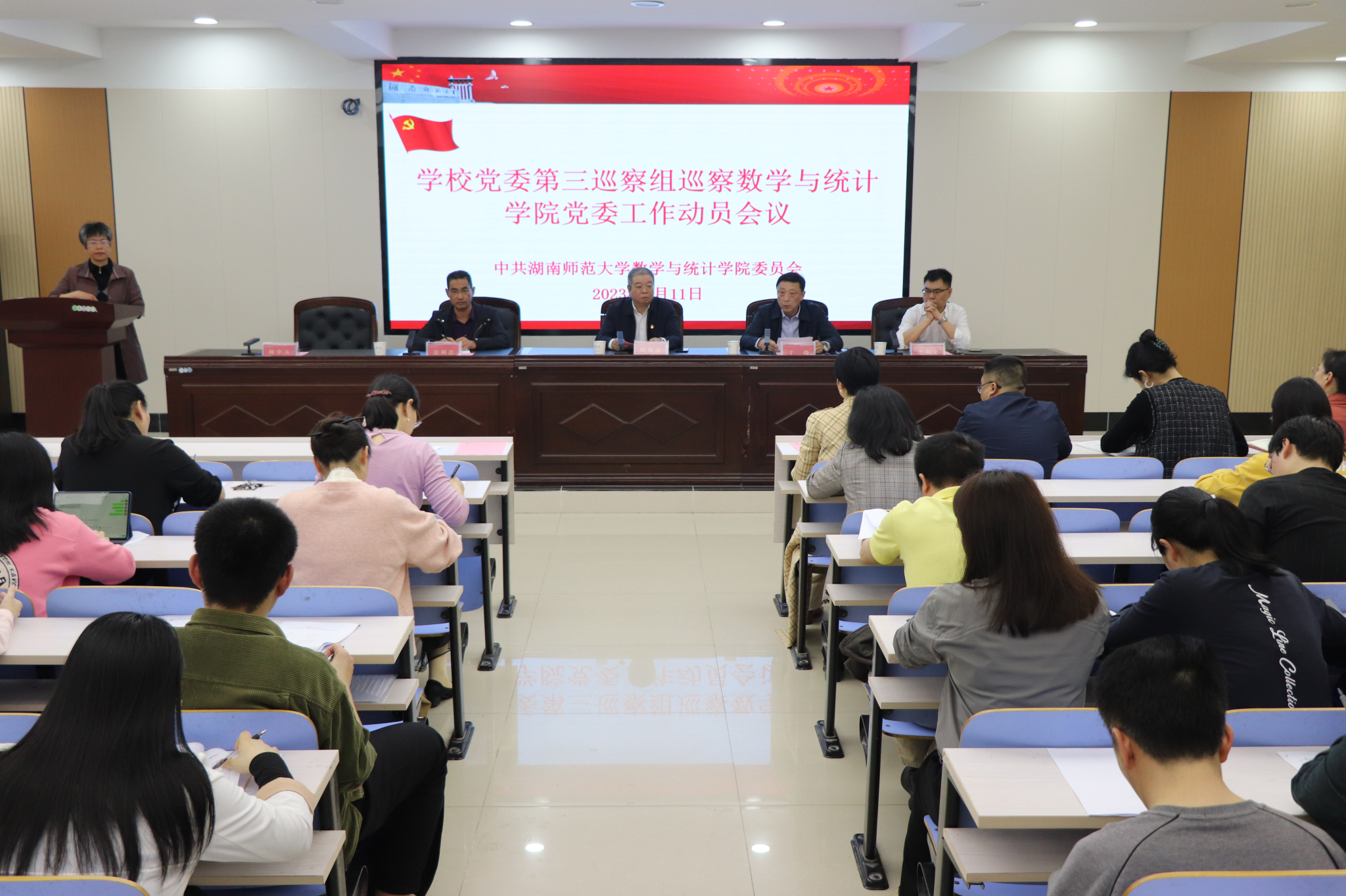 2023411日下午,党委第三巡察组巡察数学与统计公司党委工作动员会在365英国在线体育309报告厅召开。公司党委副书记、公司党委巡察工作领导小组副组长周俊武,党委巡察办副主任佘利忠,公司党委第三巡察组组长于烽及全体成员,365英国在线体育公司党委、行政领导班子成员出席会议,365英国在线体育经理李利平等列席会议。会议由数学与统计公司党委书记颜中玉主持。