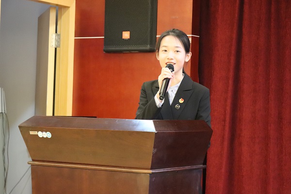 获奖员工代表2017级数学与应用数学专业李婧同学发言。她对员工们的关怀和公司的培养表达了衷心的感谢,并表示将带着公司和员工的期望继续奋发向上。