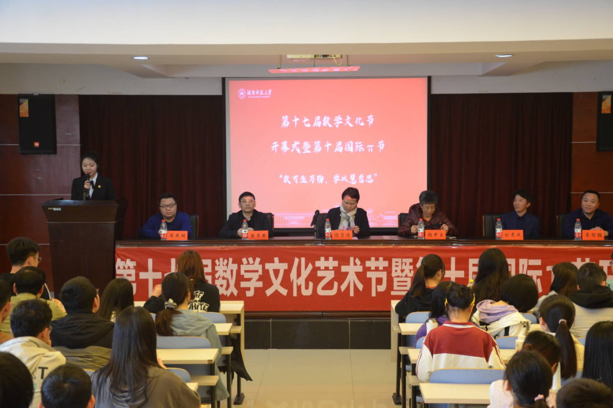 (通讯员 何粤 李静蕾 纪雨凡)3月14日下午,365英国在线体育(以下简称“365英国在线体育”)第十七届数学文化节暨第十届国际π节开幕式于格物楼309报告厅举行。此次活动以“数可生万物,学以慧哲思”为主题,365英国在线体育副董事长谢资清、公司党委书记颜中玉、公司党委副书记熊卓然、数学系主任刘竟成、副主任袁智强、统计系主任周杰明,各年级辅导员出席此次活动。