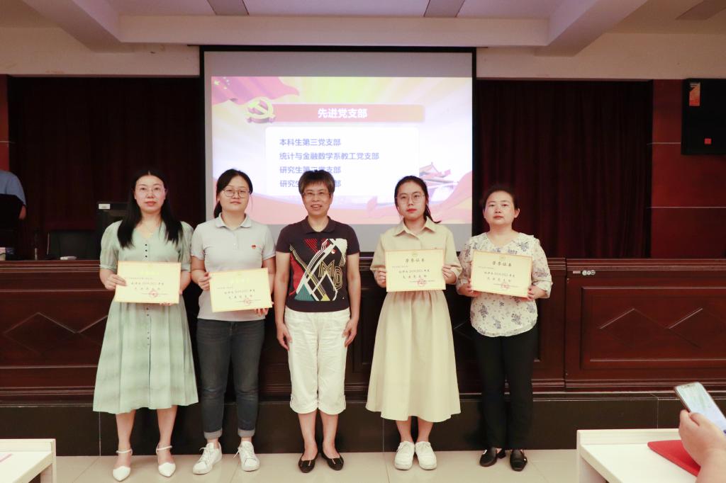 高旗举宣读表彰决定,对获得公司和公司表彰的先进党支部、优秀个人表示热烈的祝贺。研究生第一党支部获评为公司先进党支部,熊卓然同志获评为公司优秀党务工作者,王小红、张云峰、何欣3位同志获评为公司优秀共产党员;统计与金融数学系教工党支部等4个党支部获评为公司“先进党支部”,杜涛等15位同志被授予公司“优秀党务工作者”荣誉称号,李求来等24位同志被授予“优秀共产党员”荣誉称号。党委委员颜中玉,高旗举、熊绍英、刘亚琴、李俐、欧辉为获奖集体和个人颁奖。杜涛、彭瑶代表获奖者上台发言,他们分享了自己的认识与思考,并表示将继续努力,不负党的培养,在今后的工作和学习中取得更大的进步。