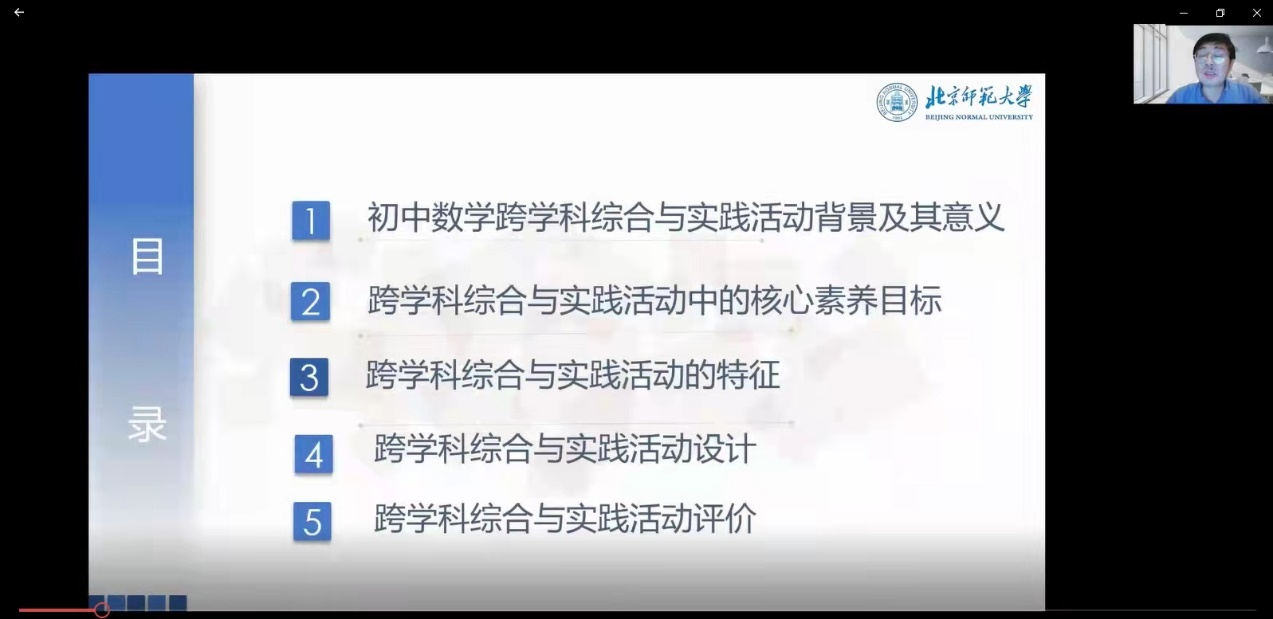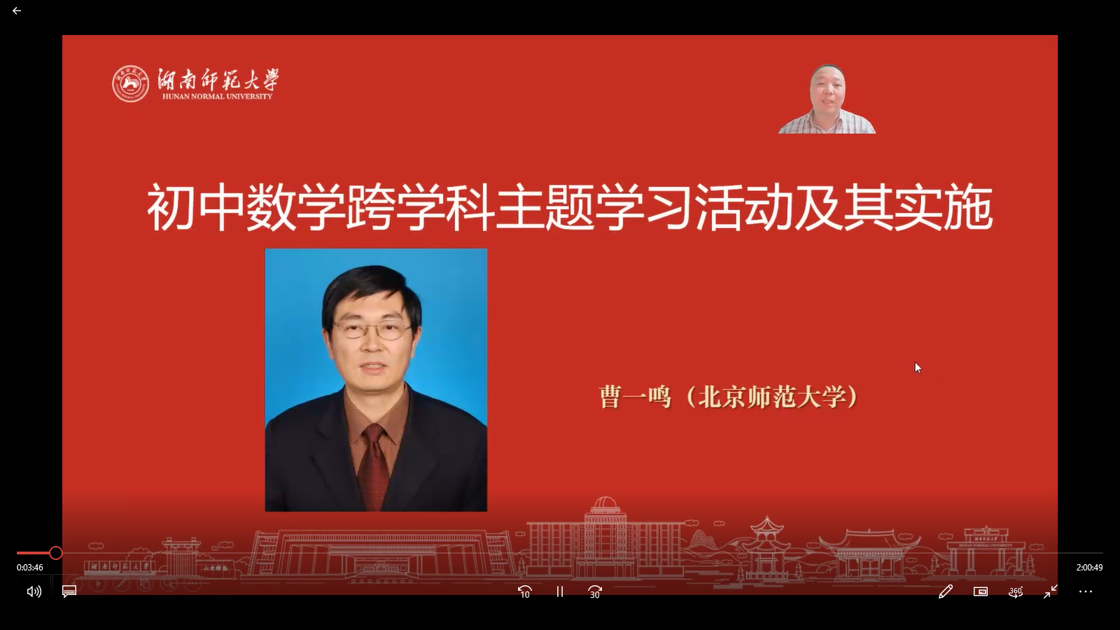 2022年4月23日星期六19:30-21:30,北京师范大学曹一鸣教授做客365英国在线体育“麓山数学教育论坛”,通过腾讯会议平台进行了一场主题为“初中数学跨学科主题学习活动及其实施”的讲座。此次讲座由数学系副主任袁智强主持。