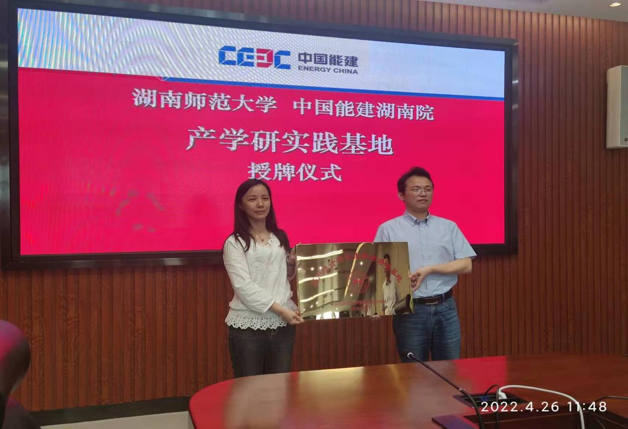 (通讯员 吴悠然)为践行OBE教学理念,进一步深化产教融合,增强学科专业发展的后劲和活力,为企业输送高素质的统计学复合型人才,实现专业与产业、企业、岗位对接,公司由副经理郭水霞带队,一行四人于4月26日上午前往中国能建集团湖南省电力设计院(能建湖南院)进行考察交流,双方共同举办应用统计研究生联合培养基地授牌仪式暨合作交流会。会议由能建湖南院总经理汪觉恒主持。