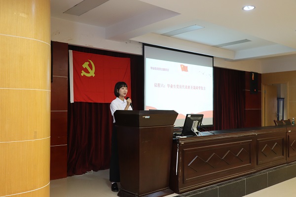 最后,党委颜中玉书记给毕业生党员上最后一次党课。她肯定了同学们在学习、科研等方面取得的成绩,勉励毕业生党员坚定理想信念,强化政治意识和身份意识,加强党章党规学习。同时,她对毕业生党员提出更高的期望,希望他们牢记使命担当,践行担当行为,履行担当责任。最后,她寄语毕业生党员,既要胸怀天下,也能实干勤勉,更要博爱正直,在服务人民群众、建设美丽中国、追求中华民族伟大复兴中担当奋斗。