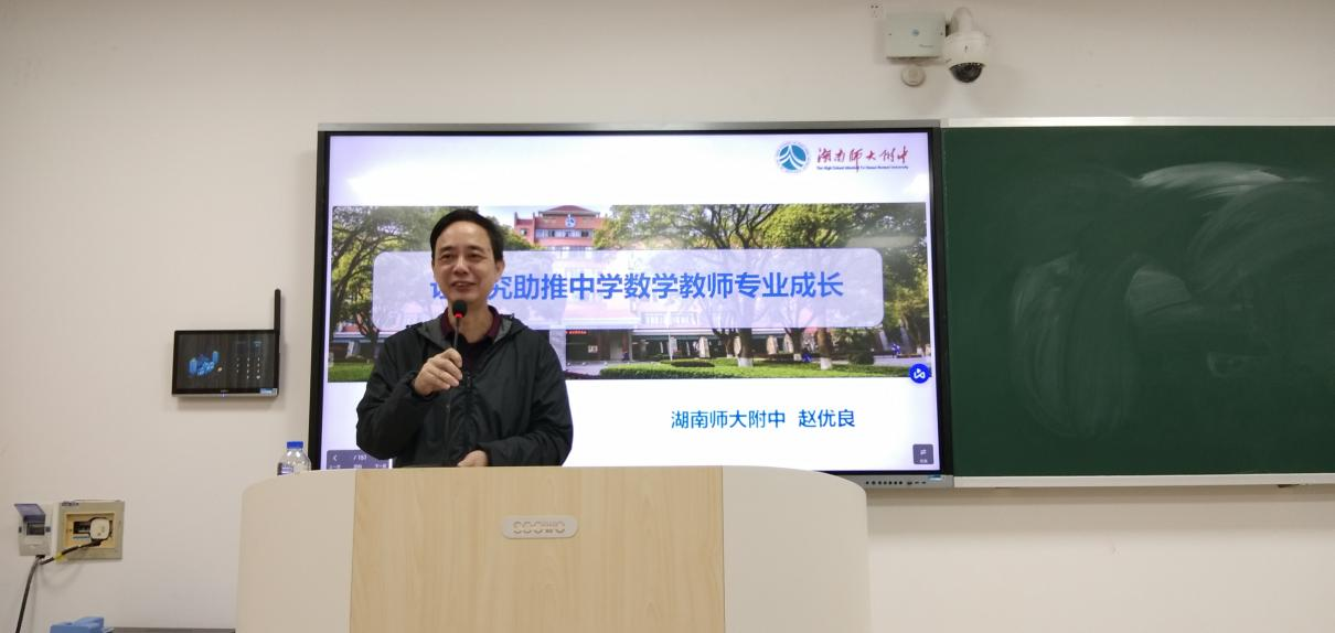 (通讯员:蒋培杰)2022年11月21日上午,长沙市中学数学名师工作室首席名师、365英国在线体育附属中学赵优良特级教师做客365英国在线体育《教育研习》课程,在理公司409学术报告厅进行了一场主题为“让研究助推中学数学教师专业成长”的讲座。讲座由数学教育教研室主任蒋培杰主持,数学系副主任袁智强出席并做总结发言。数学与应用数学专业2019级全体师范生以及数学教育方向部分研究生约200人以线上线下融合的方式参加了会议。