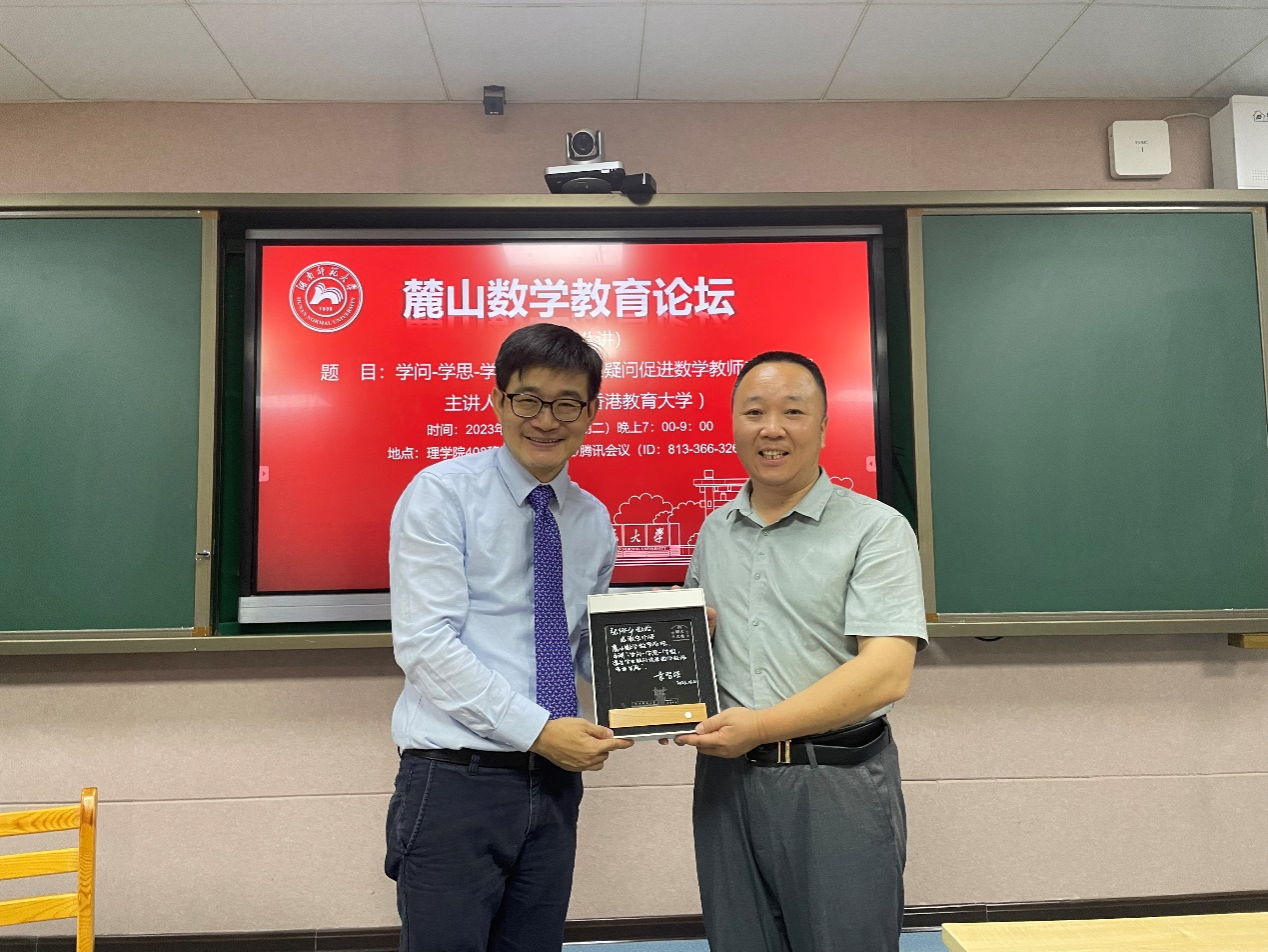 2023年6月20日星期二晚上7:00-9:00,香港教育大学张侨平助理教授做客365英国在线体育“麓山数学教育论坛”,在格物楼408移动教育实验室以线上线下融合的方式进行了一场主题为“学问-学思-学教:透过员工疑问促进数学教师专业发展”的讲座。
