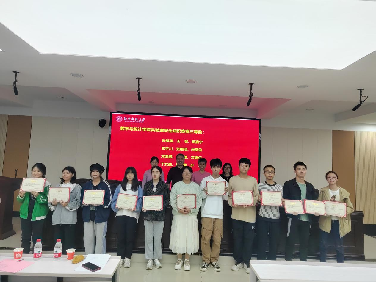 讲座结束后,由计算与随机数学教育部重点实验室专职副主任刘亚琴宣读本次实验室安全知识竞赛的表彰决定,出席本次会议的各位领导为各获奖队伍颁发荣誉证书。