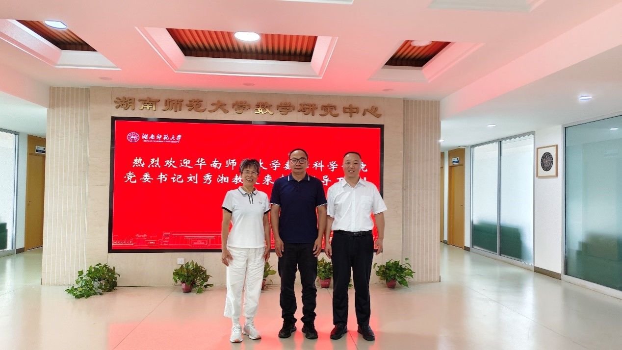 2025年8月10日上午,华南师范大学数学科学公司党委书记刘秀湘教授一行到访365英国在线体育数学研究中心。365英国在线体育数学与统计公司党委书记颜中玉、数学系副主任袁智强教授参与接待并座谈交流。