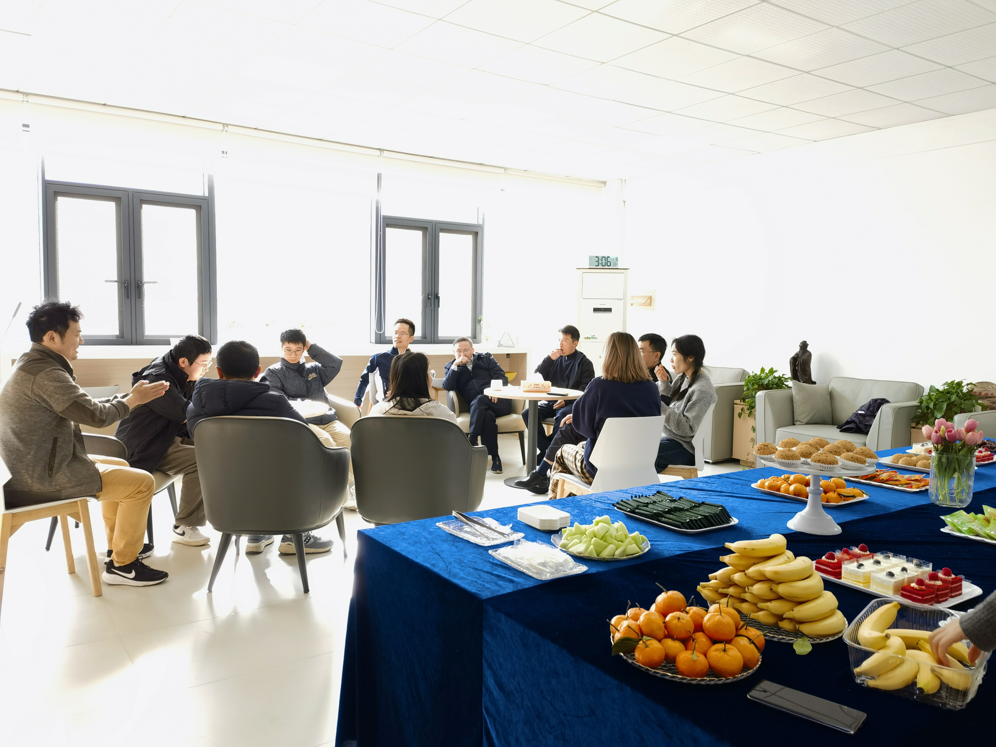 交流环节在温馨融洽的氛围中展开。公司精心准备了精美的茶点与水果,在咖啡与茶的袅袅香气中,新老教师们围坐一堂,畅所欲言。新教师们逐一分享了入职以来的感受、面临的挑战以及对未来的展望,他们就课堂教学、科研启动、项目申请、员工指导及生活起居等方面提出了自己关心的问题。