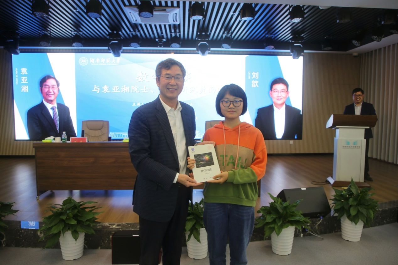 在交流互动环节,与会员工从如何平衡学科竞赛与专业成绩、如何体会数学之美等方面进行提问,袁亚湘、刘歆为同学们解答。