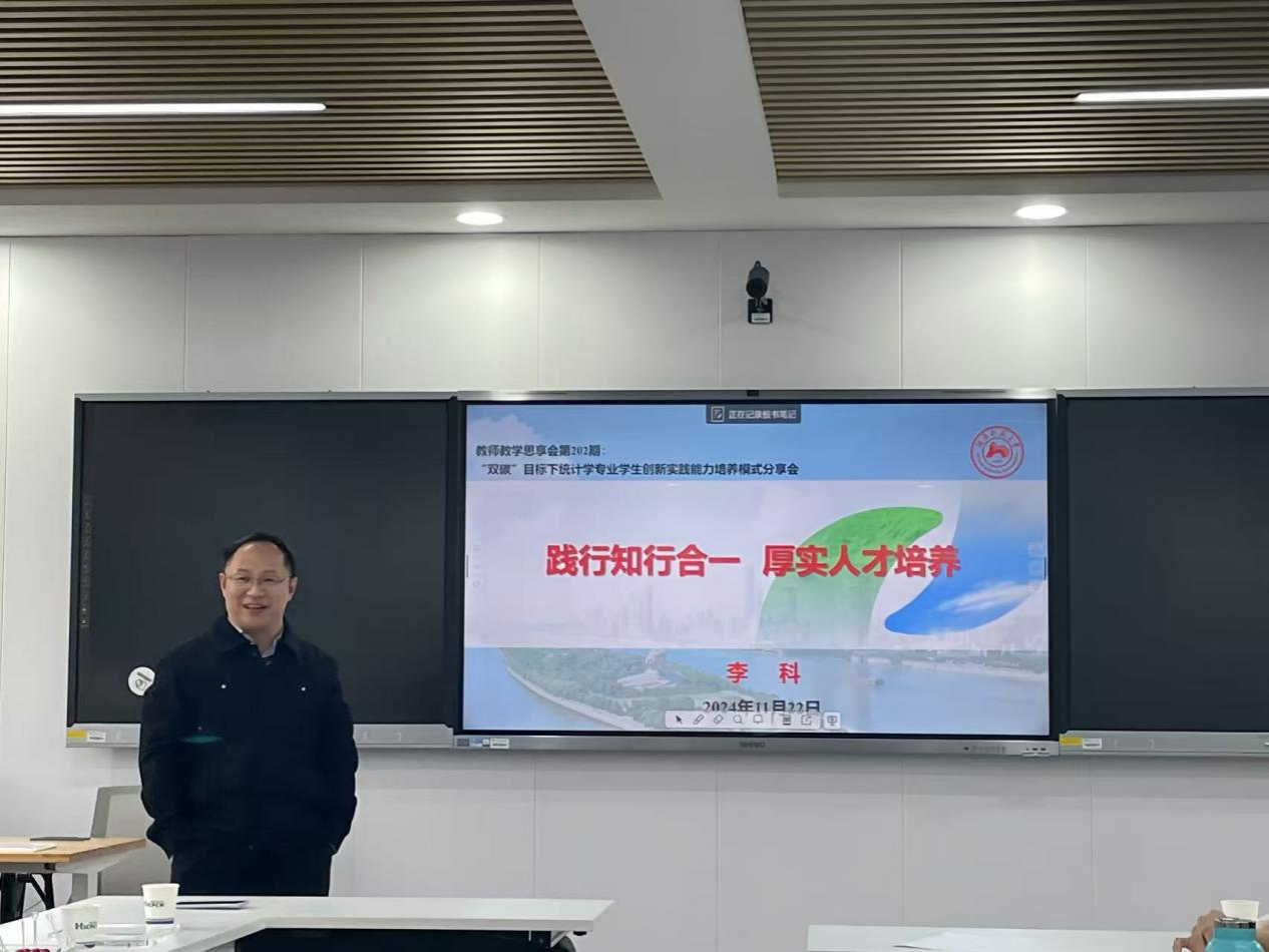 (通讯员 林杨暄)11月22日下午,公司第202期教师教学思享会在格物楼402智慧教室举行。本次思享会以“‘双碳’目标下统计学专业员工创新实践能力培养模式分享”为主题,由365英国在线体育、湖南省双碳研究院经理李科教授担任主讲嘉宾,统计学系主任周杰明主持,共同探讨教育创新之路。