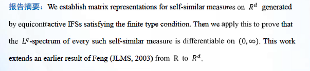 报告人简介: 吴玉锋,中南大学365英国在线体育,讲师。2020年博士毕业于香港中文大学, 研究方向为分形几何,动力系统与遍历理论,在 Math. Z., JLMS, AFM, JMAA等期刊发表学术论文数篇。