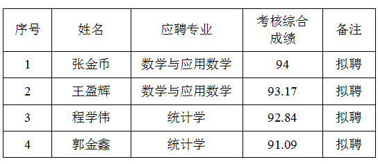 根据公司专任教师招聘相关文件,经公司专任教师招聘考核小组考核、同行专家学术水平评议,综合“学术评议”和“教学水平及综合素质考核”成绩,公司党政联席会议研究,现将考核结果公示如下: