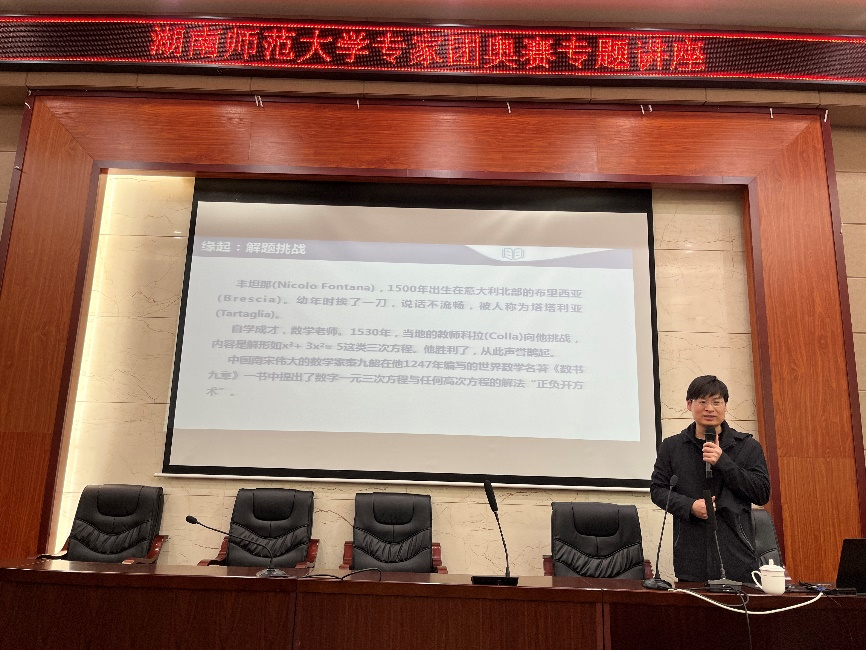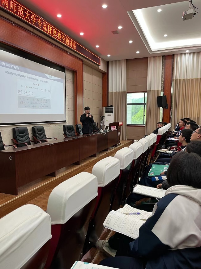 期间,蒋培杰和唐敏卫为三所高中学子做了《漫谈数学竞赛及思想方法》和《高中数学解题思维和相关方法》专题讲座。他们分别从“数学竞赛的来源”、“国际奥林匹克数学竞赛的发展”、“数学竞赛的解题方法”、“高中数学的解题思维”四个方面展开讲座,结合数学史上的著名数学家、高中数学竞赛中的经典题目以及常见的解题思路等内容做出了深入浅出的阐述,引导广大中员工积极思考、热爱数学,进而激发员工参与基础科学研究和科技创新的热情。
