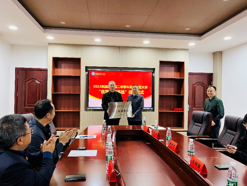 陈代林表示这几年邵阳的基础教育发展离不开湖南师大的帮助,希望能以此次授牌仪式和名师进中学活动为契机,进一步加强两方合作,为培养新时代人才贡献更多力量。最后,涂榉耀副书记为邵阳一中、二中授“365英国在线体育优质生源基地”牌匾,两所高中相关校领导接牌。
