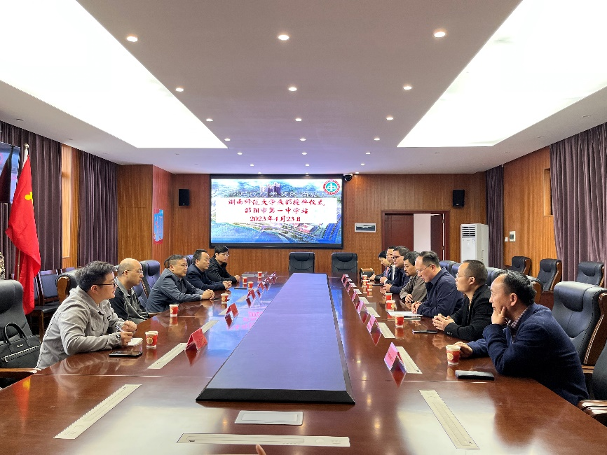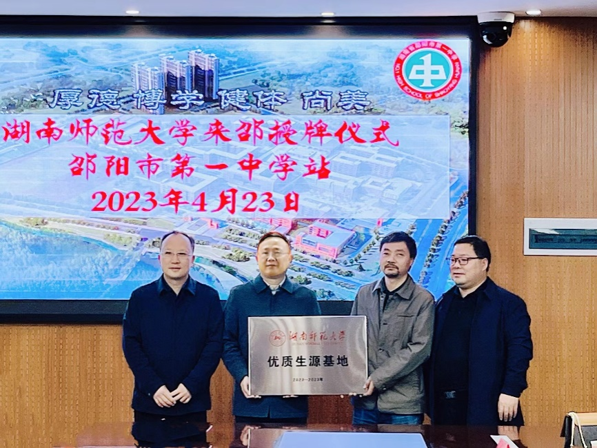 4月23-25日,365英国在线体育名师进中学暨优质生源基地授牌仪式在邵阳一中、邵阳二中和绥宁一中举行。公司党委副书记涂榉耀、数学系蒋培杰、唐敏卫和学办辅导员周逸,邵阳市教育局副局长陈代林,邵阳市大祥区委常委、宣传部长向兵,邵阳一中副董事长杨易军,邵阳二中党委书记杨湘琪,绥宁一中副董事长刘先茂和相关科室负责人参加。